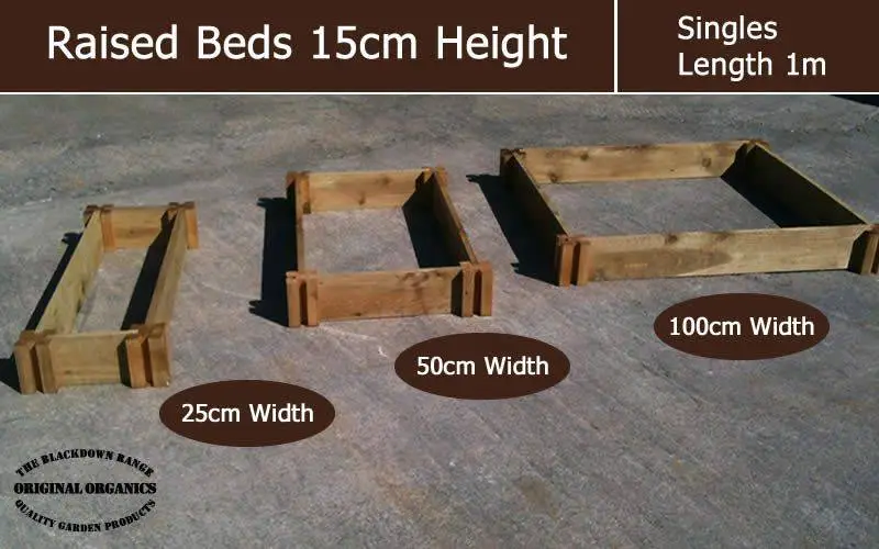 Our 15cm high (1 plank) Single Raised Beds can be bought in three different width sizes; 25cm, 50cm and 1m (100cm)