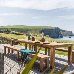 Ideal for both indoor and outdoor settings, the 10-seated Reclaimed Teak Dining Table is a beautiful addition to any home. Its exquisite, sustainable natural wood appearance is the result of using teak wood reclaimed from Old Colonial buildings, rendering it the ultimate eco-friendly product. Traditional carpentry techniques were employed to construct this stunning piece of furniture, with the wood materials lightly buffed to produce a high-quality smooth finish. The use of recycled timber has no impact on the strength of the product; instead, it enhances the already strong and durable teak wood’s longevity. Two Reclaimed Teak Open Slatted Backless Benches accompany this gorgeous dining table, crafted from solid reclaimed teak and perfect to match the Reclaimed Teak Open Slatted dining table. A sturdy bench, ideal for accommodating the whole family at the table. The wood is exceptionally seasoned and obtained from old colonial buildings, ensuring a hard-wearing piece that will withstand the rigors of daily use and last for generations.