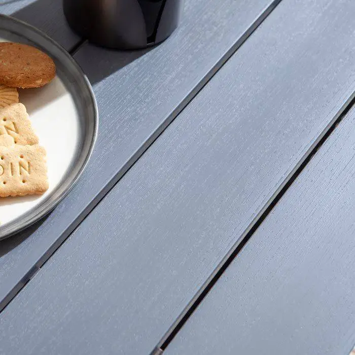 - Polyethylene slatted table top with woodgrain effect