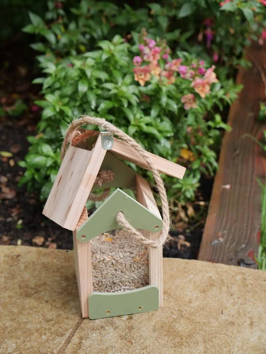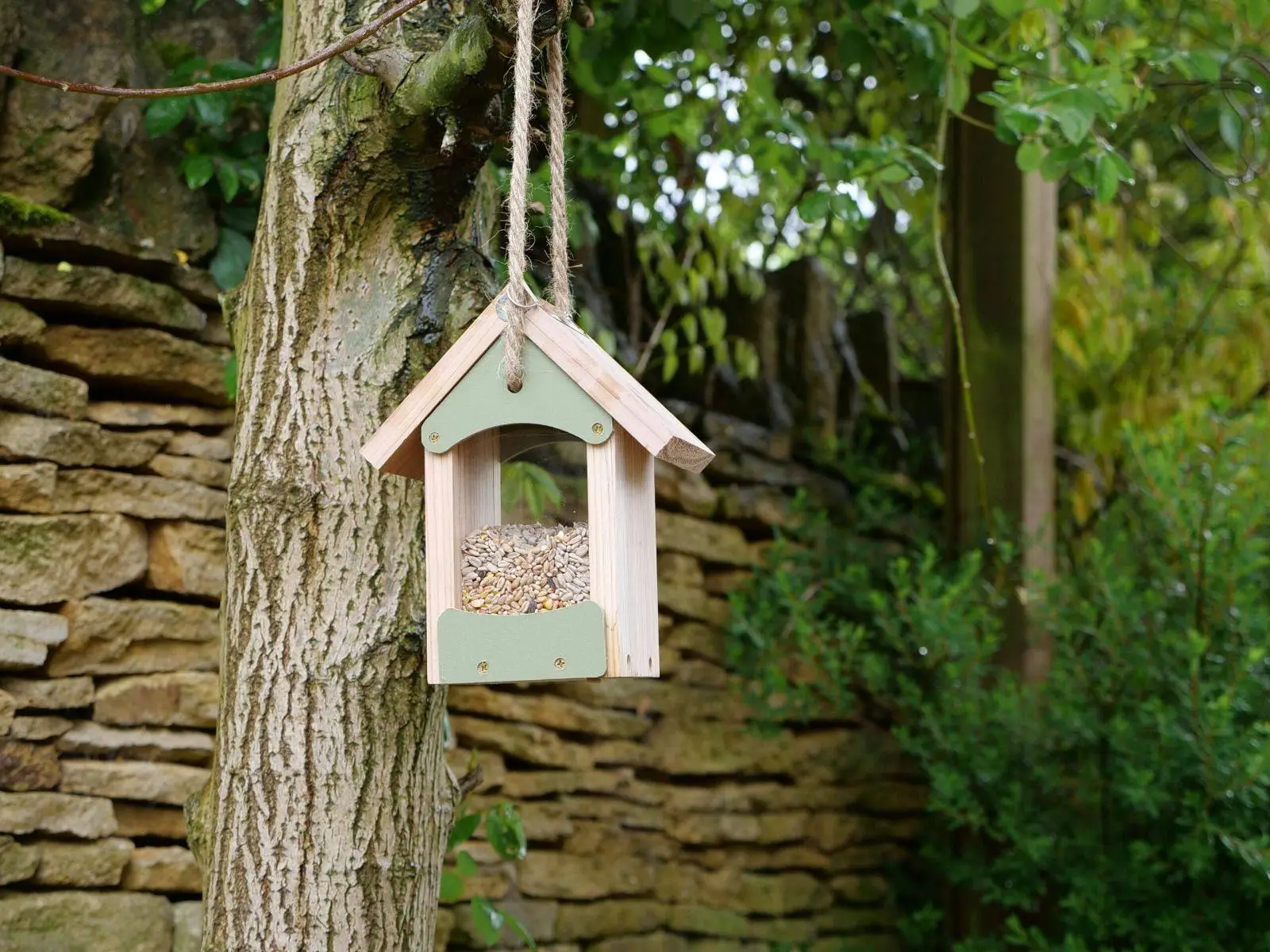 It can be hung from almost anything and the birds can grip onto the front green recycled plastic bar to feed easily.
