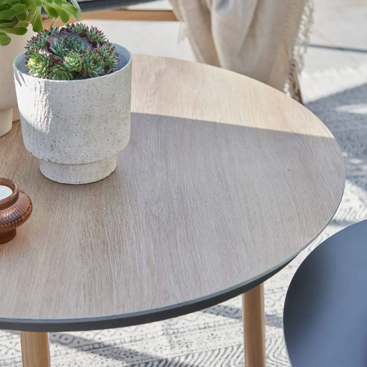 Heat Transfer coating to the aluminium legs provides a natural wood look finish and excellent weather resistance. Highly resistant to peeling or damage through use.