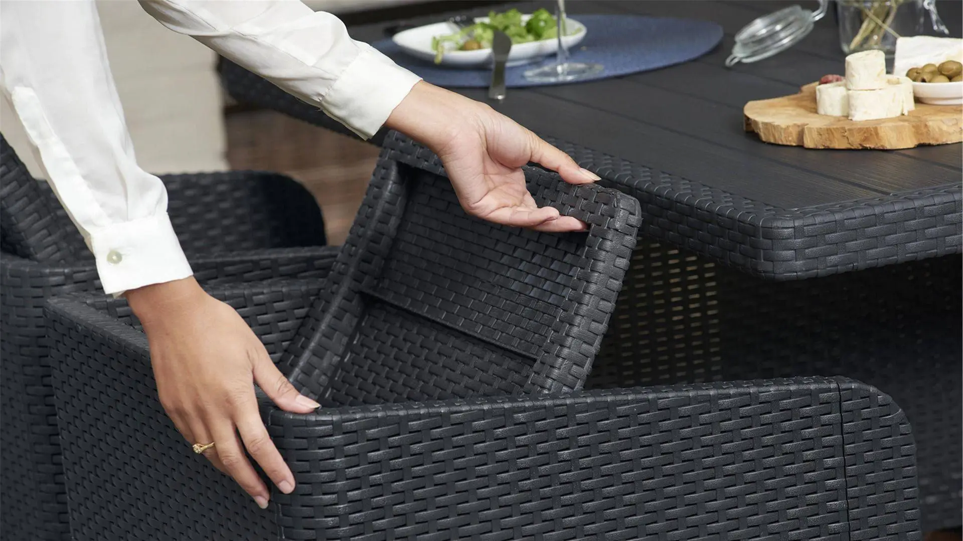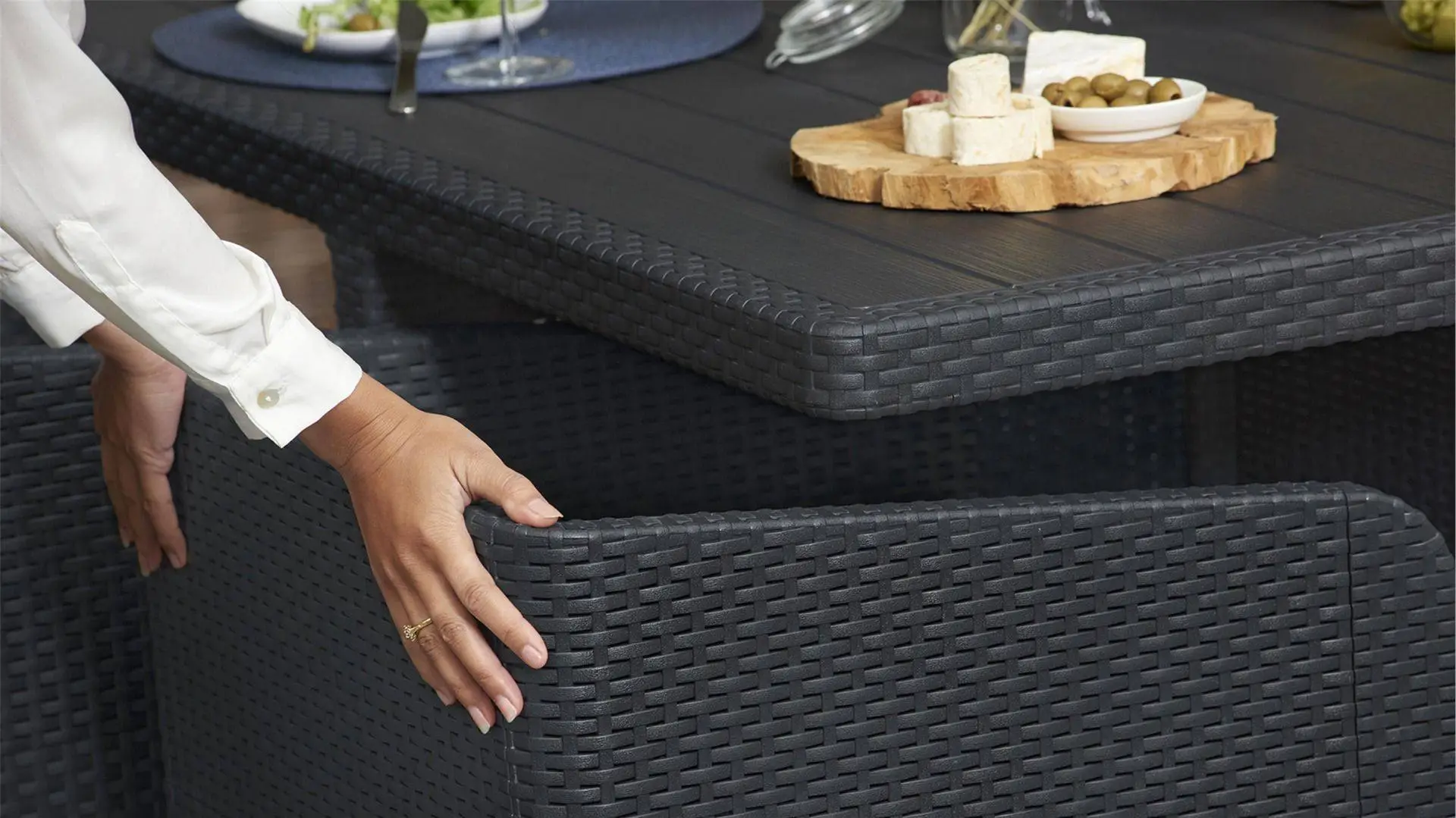 - Stylish Finish – With a flat wicker effect finish in a contemporary graphite grey, this outdoor dining set will add a luxurious aesthetic to the outside of your home.