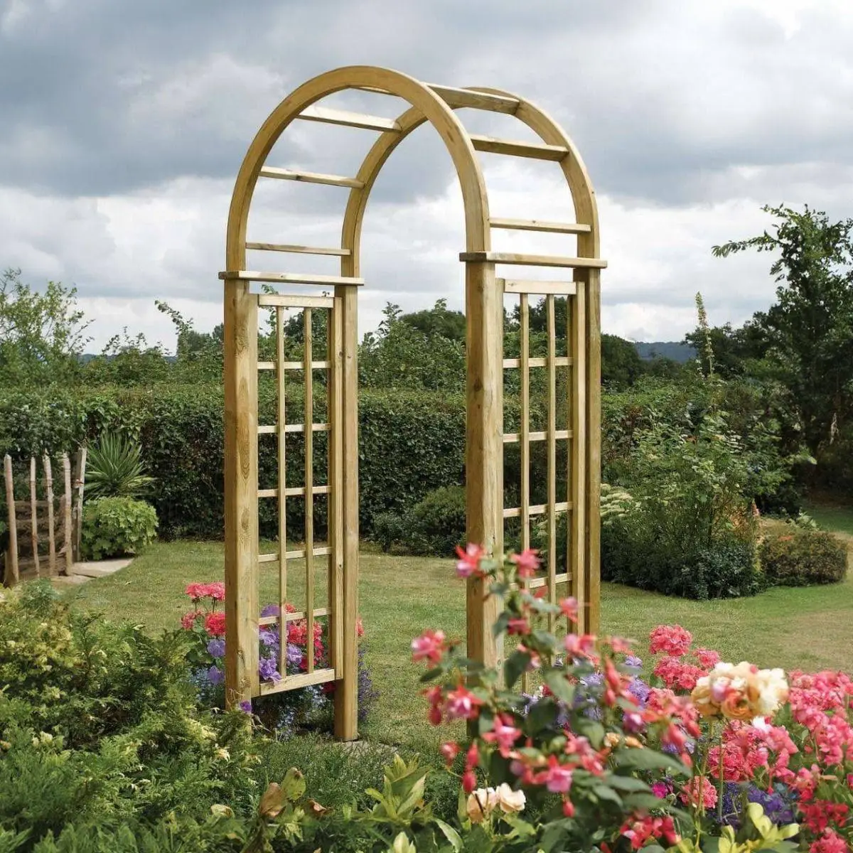 Not only can the Round Top Arch bridge garden separations, it can also serve as a stunning focal point. Its ability to elevate flower beds and provide a new dimension to any garden makes it a must-have addition. To seamlessly integrate it with your garden, you can customize its appearance with paint or stain. The arch is simple to assemble, with all the necessary fittings included for your convenience.