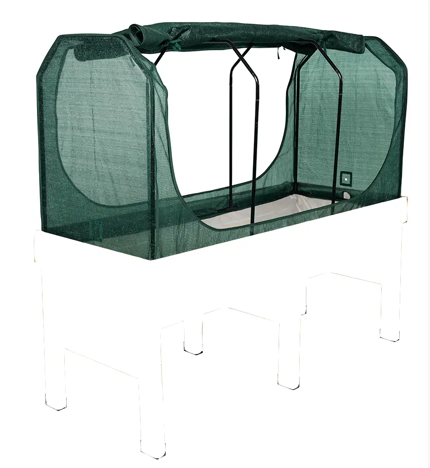 The cover is perfectly designed to help your crops as it reduces the tempature of the soil. It’s also UV-stabalized with the material – polyethylene material and is fade resistant to the sun. Be warned the easy fill opening system when combined with VegTrug water reservior (sold separately).
